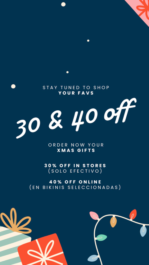 XMAS TIME ✨ -40% OFF EN BIKINIS SELECCIONADAS Y -30% OFF EFECTIVO LOCALES! 🎄 3 Y 6 CUOTAS SIN INTERÉS 💪🏻 ACUMULÁ -5% OFF TRANSFE